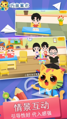 1、软件采用情景化教学模式,将抽象的数学概念融入有趣的故事情节中,通过角色扮演、任务挑战等方式激发学习兴趣。每个章节都设计有独特的算术技巧训练,让孩子在探索中学习。