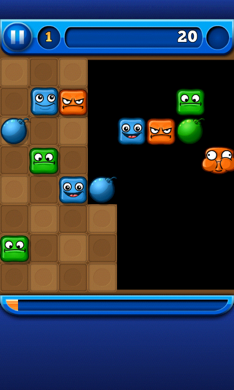 -游戏的画面非常有萌点,很适合美眉。每个方块都被设计成可爱的炸弹造型,并配有丰富的表情变化,从开心到愤怒,各种情绪都能在这些小炸弹身上找到。这种细节设计让游戏充满了亲和力,尤其受到女性玩家的喜爱。色彩搭配也非常柔和,长时间游戏也不会感到视觉疲劳。