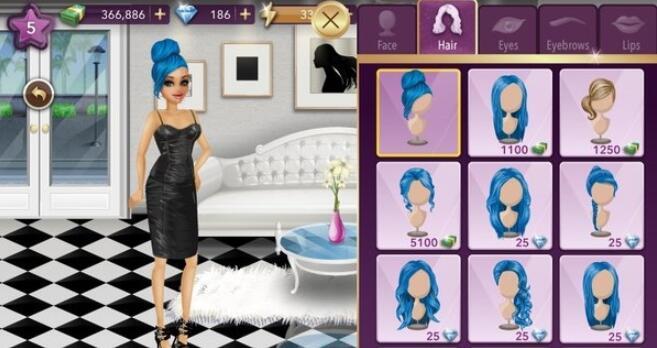 5、超过2000种服饰配件支持自由混搭,妆容系统包含50种眼影色调和30款唇彩,连美甲图案都能自定义,确保每位玩家打造出独具辨识度的明星形象。