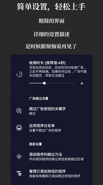 支持自定义规则 - 高级用户可自行添加特定APP的广告跳过规则