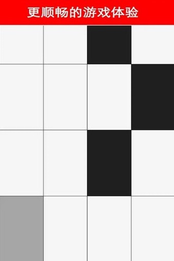 开局以后点击第一块黑块儿,然后游戏就正式开始了。这时候玩家应该保持手指在第一个黑块儿的这一行,迎接第二个黑块儿。建议使用指腹而非指尖点击,这样触控面积更大更准确。