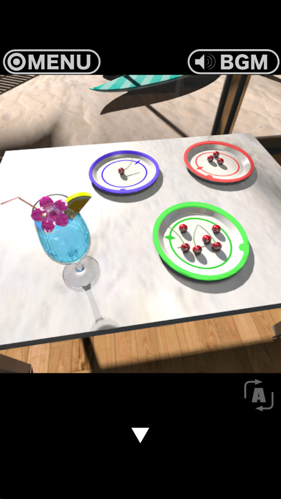 在图1的餐桌上,玩家可以发现一盘摆放整齐的樱桃。仔细观察会发现不同颜色的樱桃数量不同:绿色6颗、蓝色1颗、红色3颗。这些数字将成为后续解谜的重要线索。