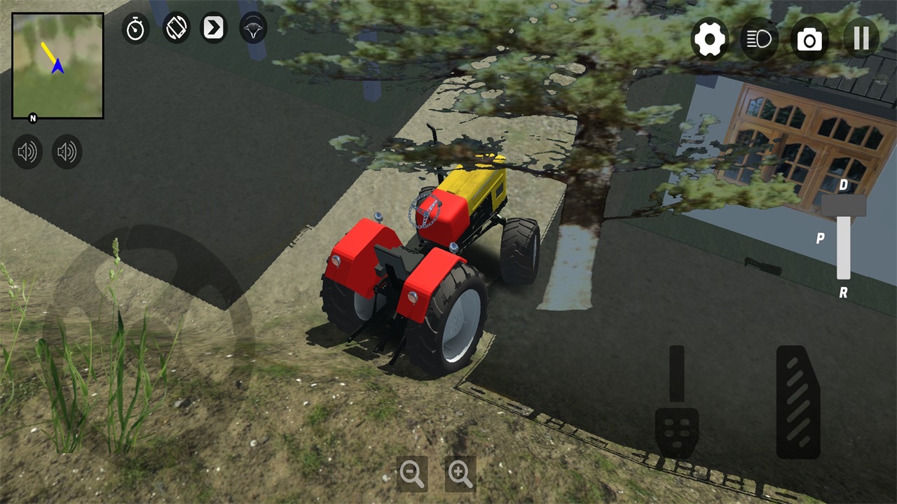 左边为控制方向的方向盘,右边为油门刹车和挂挡,操作方式模拟真实拖拉机驾驶体验。