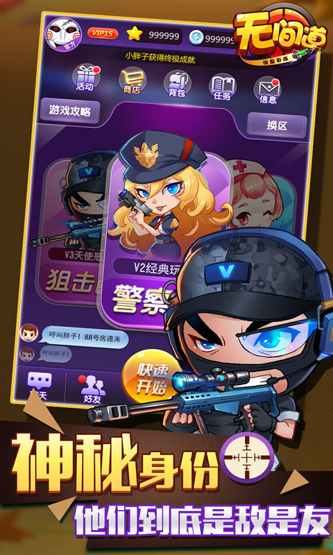 《无间道谁是卧底》提供两种核心玩法模式:经典"警察杀手"模式规则简明易懂,适合新手快速入门;进阶"天使恶魔"模式引入了特殊身份角色,如能查验身份的侦探、可保护他人的守护者等,使战局更加扑朔迷离。游戏还定期更新主题赛季,加入电影中的经典场景和角色皮肤。从梁朝伟标志性的忧郁造型到刘德华的帅气警服,这些精心设计的时装系统让玩家在推理之余也能享受装扮乐趣。