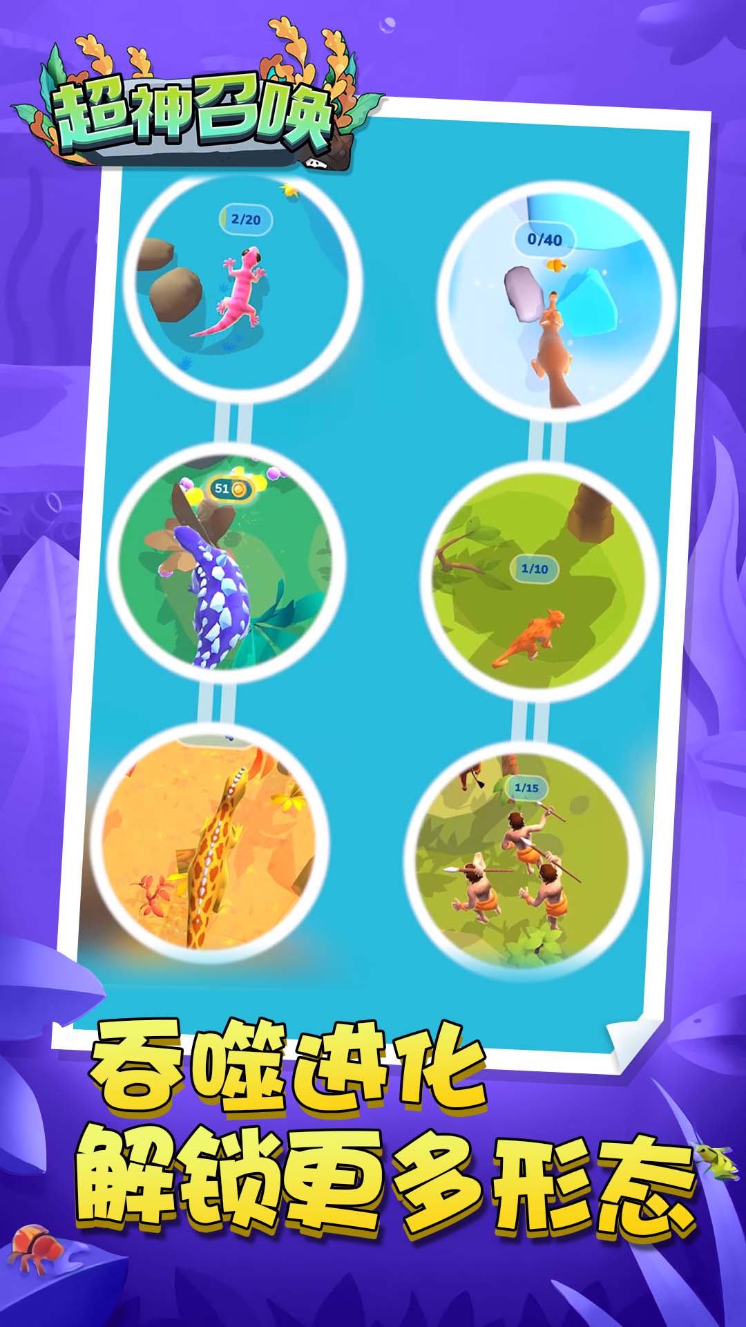 《召唤》是一款以经典"大鱼吃小鱼"玩法为核心的休闲游戏。在游戏中,玩家将化身为一只小小的海洋生物,置身于危机四伏的深海世界。为了在这个弱肉强食的环境中生存下去,玩家需要时刻保持警惕,既要躲避比自己庞大的掠食者,又要不断寻找更弱小的猎物来壮大自己。游戏通过逼真的海洋场景和丰富的鱼类种类,为玩家打造了一个充满挑战与机遇的深海冒险世界。随着游戏的深入,玩家将体验到从弱小到强大的成长过程,最终成为称霸海洋的顶级掠食者。