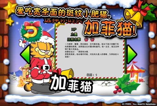 游戏最大的特色就是将加菲猫的幽默风格与塔防玩法完美结合。玩家不仅能见到熟悉的漫画角色,还能体验独特的节日主题关卡。游戏拥有丰富的角色成长系统,通过收集曲奇饼干可以提升角色属性和解锁新技能。每个关卡都设计有特殊挑战,比如保护特定建筑或在一定时间内击退敌人。游戏还加入了有趣的剧情动画,让玩家在战斗之余也能享受加菲猫的搞笑日常。特别值得一提的是游戏的节日元素,从圣诞装饰到节日音乐,处处洋溢着欢乐的节日气氛。玩家还能解锁各种节日装扮,比如圣诞老人装的加菲猫、驯鹿造型的欧迪等。游戏难度循序渐进,既有适合新手的简单关卡,也有考验策略的高难度挑战,保证每位玩家都能找到乐趣。