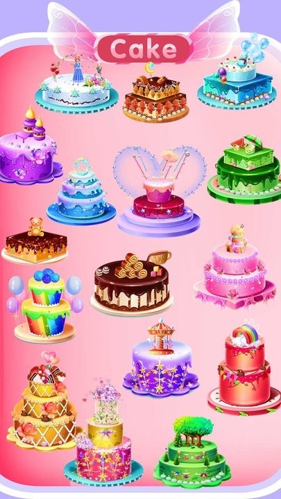 根据不同主题选择样式进行蛋糕制作。游戏内置12大主题场景,包括婚礼、生日、周年庆等特殊场合。每个主题都配有专属的背景音乐和特效,比如制作婚礼蛋糕时会飘落玫瑰花瓣,圣诞主题则伴有铃铛音效。