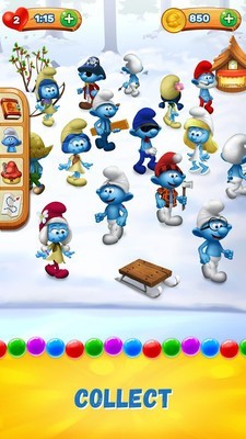 1.游戏除了经典的消除玩法外,还加入了丰富的冒险元素。玩家可以操控蓝精灵在野外场景中探索,收集各种稀有道具和资源,这些道具不仅能帮助解锁新关卡,还能用来升级角色的能力。