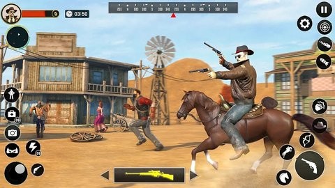 沉浸式的西部体验:《西部牛仔射击》通过精细的画面和音效,为玩家营造了一个真实的西部世界。从风吹草动的荒野到夕阳西下的沙漠,每一个细节都栩栩如生,让玩家仿佛置身于19世纪的美国西部。游戏中的NPC对话、环境音效和背景音乐都经过精心设计,进一步增强了游戏的沉浸感,让玩家能真切感受到西部牛仔的生活氛围。