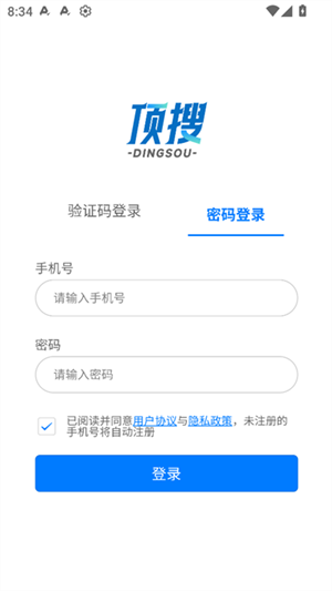 安装完成后,打开软件,系统会显示用户协议和隐私政策,点击“同意并继续”即可进入登录界面。