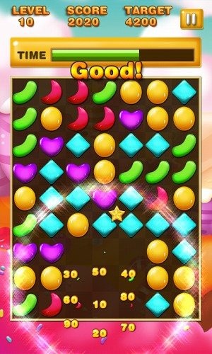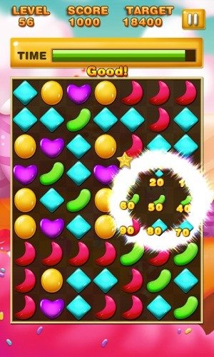 音效相当欢快,关卡丰富,让玩家感受到有趣休闲的玩法。游戏配乐轻快活泼,消除音效清脆悦耳,完美契合糖果主题,营造出轻松愉快的游戏氛围。