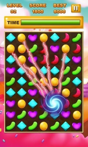 一条线上可以消除三个以上的糖果,一条线上同时消除的糖果越多,获得的分数就越多。游戏还设有特殊糖果组合,当玩家创造特殊消除组合时,会触发全屏消除等震撼特效。
