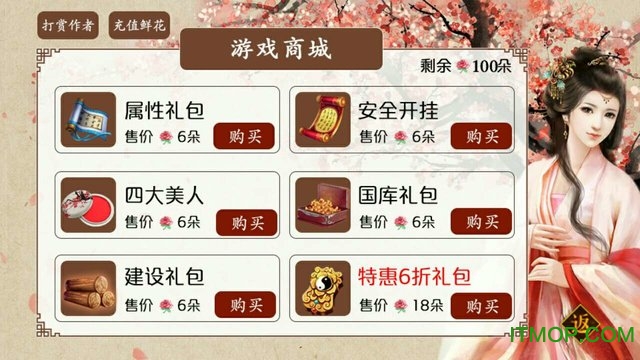 培养美人:通过赠送礼物、共同出游等方式提升好感度,解锁专属剧情和强力buff,每位美人都有独特的技能组合。