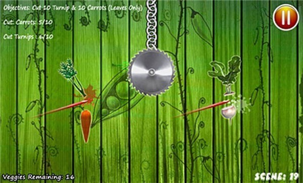 除了经典的街机模式外,游戏还提供"功夫挑战"和"蔬菜大师"两种特色模式。"功夫挑战"要求玩家完成特定切割任务,而"蔬菜大师"则是面向高手的极限测试,蔬菜移动速度会随时间不断提升。