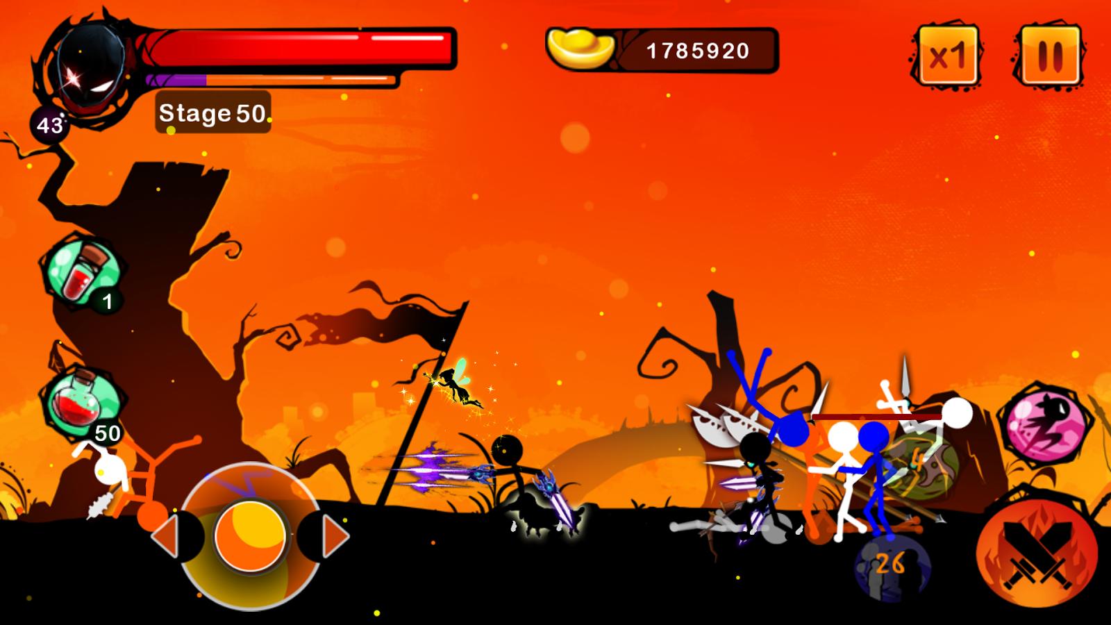 - 采用经典横版动作玩法,玩家需要精准控制火柴人角色,斩杀所有来袭的敌人
