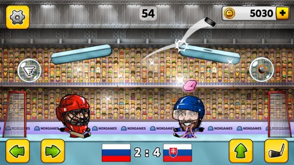 恶搞的对战玩法。除了常规的冰球规则,游戏还加入了各种特殊道具和技能,比如可以发射香蕉皮让对手滑倒,或者使用弹簧鞋进行超级跳跃。
