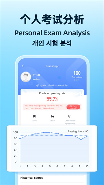 新增英语、朝鲜语等多语言支持,满足外籍人士的驾考学习需求;