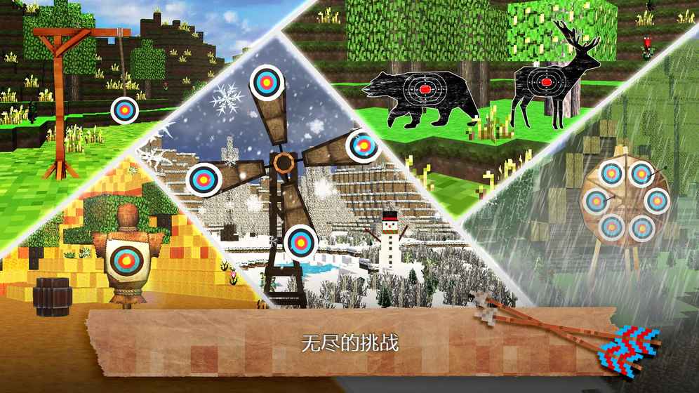 游戏还设置了全球巡回赛模式,让你足不出户就能体验世界各地的特色射箭比赛。在茂密的森林中追踪猎物,在广袤的沙漠里挑战牛仔式射击,每个场景都带来截然不同的射击体验。游戏采用复古像素风格设计,让你在方块构成的世界中感受经典射箭的魅力。当你游历全球,射击各种精美靶标时,将完全沉浸在这独特的游戏氛围中。