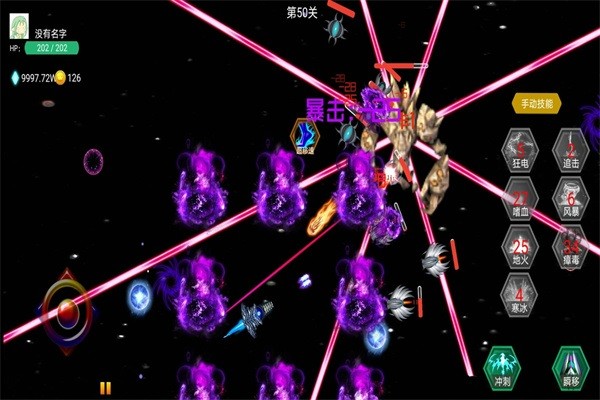游戏提供九大特色技能系统,每个技能都有独特的效果和冷却时间。"狂暴"可以短时间内大幅提升攻击力,"追击"能自动锁定多个目标,"嗜血"可以在击杀敌人时恢复生命值。八款基础战机各具特色,"尖棘"擅长近距离爆发,"霸刃"拥有超强防御,"宙灵"具备范围攻击优势。五位助战角色提供强力支援,"地雷"可以布置陷阱,"时越"能减缓敌人速度。福利系统包含每日签到、成就奖励、限时活动等多种获取资源途径。随机事件系统让战斗充满惊喜,"虫洞"可以快速穿越战场,"陨石"能造成大范围伤害,"黑洞"可以吸收敌方子弹。