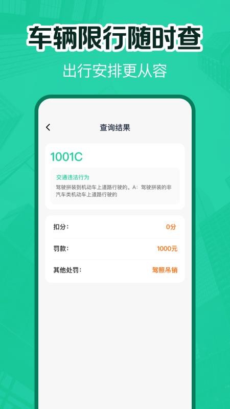 违章查询和限行信息更新及时准确,操作简单快捷,帮助用户避开违章风险,实现无忧出行。