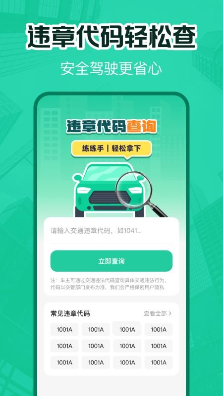 交通违章电子助理app如何查询车辆的交通违章代码?