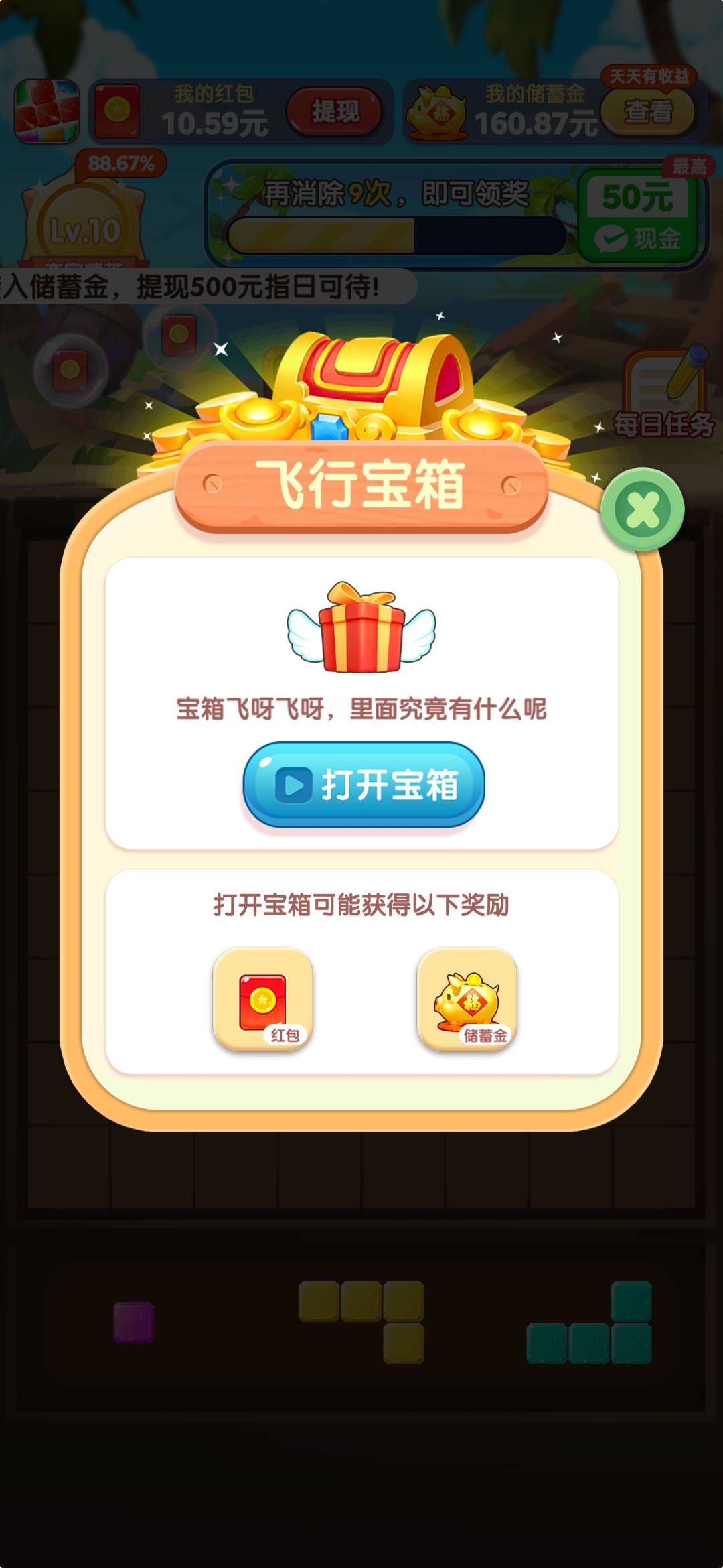 游戏提供多种奖励获取方式,包括日常任务、成就系统和限时活动等。完成指定消除任务可获得金币和红包双重奖励,奖励额度随游戏进度提升。