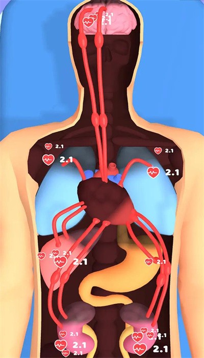 在游戏中,你将面对一具生命垂危的躯体,每一秒都至关重要。游戏的核心玩法是重建血液循环系统,从心脏出发,通过精准的点击操作将血管连接到各个器官。随着连接成功,你会看到血液重新流动的震撼效果。游戏特别设计了心跳加速机制,快速点击能让心脏跳动更快,但也要注意控制节奏避免过度刺激。随着关卡推进,还会出现血栓清除、器官修复等进阶挑战,考验玩家的反应速度和判断力。每个成功救治的病例都会带来满满的成就感。