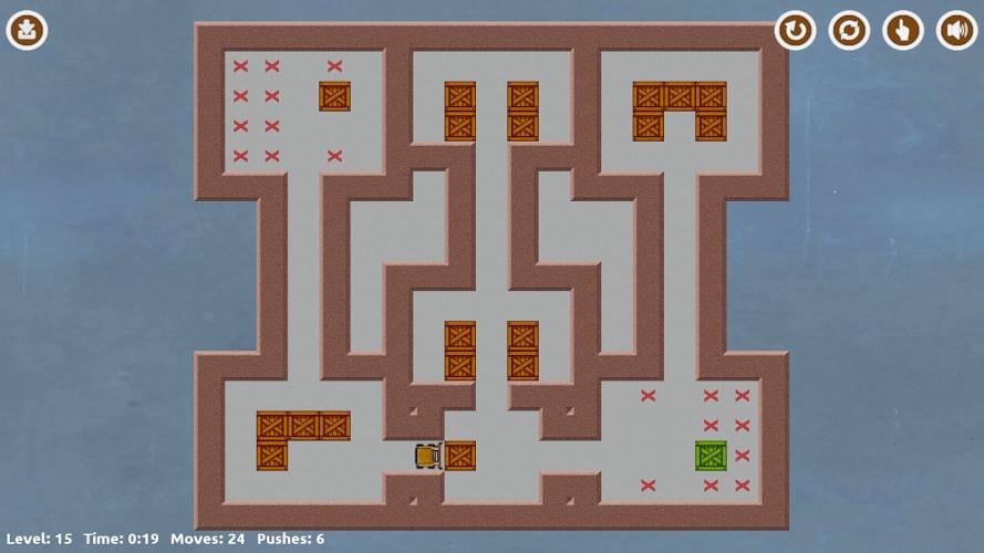 角色控制:玩家控制一个角色(通常是工人或推箱人),通过上下左右的方向键或触摸屏操作移动角色。角色可以推动箱子,但不能拉动箱子。这种单向操作机制增加了游戏的策略深度,要求玩家必须谨慎选择推动方向。