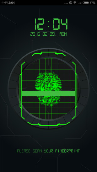 指纹式样的扫描来解锁手机(由于当前手机硬件限制,无法真正识别用户指纹)。采用虚拟指纹识别技术,通过算法模拟真实指纹解锁体验,安全系数媲美硬件方案。