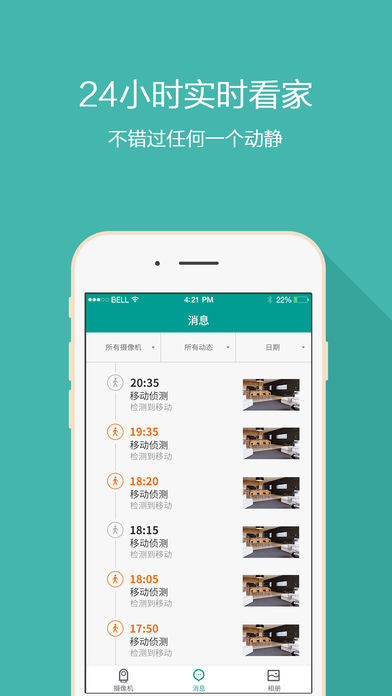 2、智能识别检测系统,在离家模式下会自动分析画面变化,发现异常立即推送报警信息到手机;