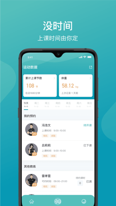 ·团课报名:提供丰富的团体课程选择,一键预约热门课程