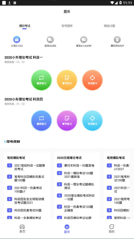 1、全真模拟:提供包括小车、货车、客车在内的各类车型驾驶考试模拟,同时涵盖教练员、货运、危险品等12种专业资格证考试题库。高度还原真实考试场景,让学员提前适应考试节奏,大幅提升通过率。