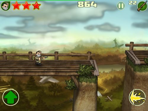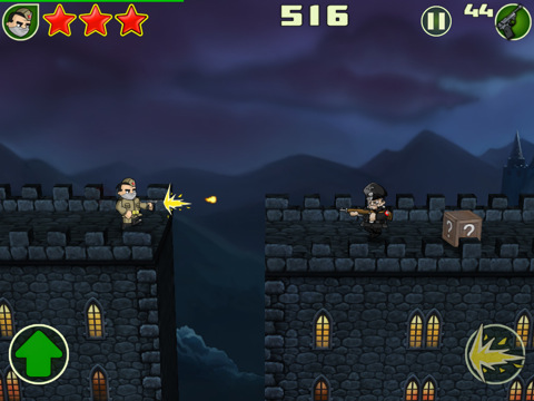 操作方面,游戏采用直观的触屏控制,左侧虚拟摇杆控制移动,右侧按键实现跳跃和射击,操作手感流畅顺滑。画面表现上,虽然是2D横版游戏,但通过精细的粒子特效和动态光影,营造出媲美3D的视觉体验。音效设计同样出色,枪械射击声、爆炸声和环境音效都经过专业录制,带来身临其境的战场氛围。游戏包含六个精心设计的关卡,每个关卡都有独特的场景设计和BOSS战。途中还能获得火箭筒、坦克等强力道具,以及恢复生命的急救包。诙谐的角色动作和夸张的物理效果,为紧张的战争题材增添了不少轻松元素,让游戏既刺激又充满乐趣。