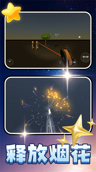 利用创意化的设计出各种不同的烟花造型,还有不同的场景去自由体验和冒险。游戏提供了数十种独特的烟花造型,从传统的圆形烟花到创新的心形、星形等特殊形状。每个场景都经过精心设计,不同的环境会影响烟花的视觉效果,让你在探索中发现更多惊喜。