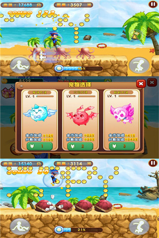 4.宠物伴跑系统:可以收服呆萌海龟、敏捷海鸥等12种特色伙伴,每种宠物都拥有独特的辅助能力,如海龟能提供护盾,海鸥则可进行短距离飞行