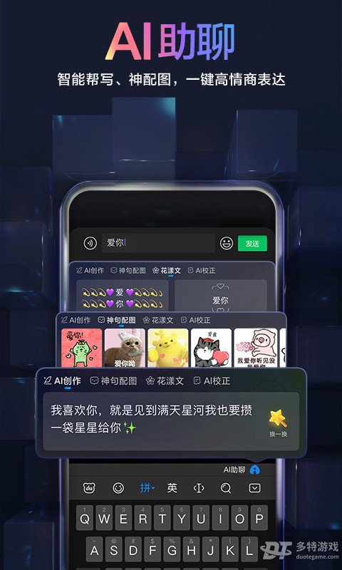 全新升级的表情商店每日更新百款潮流表情包,包含颜文字、GIF动图及原创IP系列,承包你所有的社交表达需求。智能场景感应技术能自动识别聊天、搜索、办公等不同场景,动态调整候选词排序和键盘布局。主题商城汇集3000+款设计师作品,按节日、动漫、明星等维度精细分类,支持皮肤DIY混搭功能。