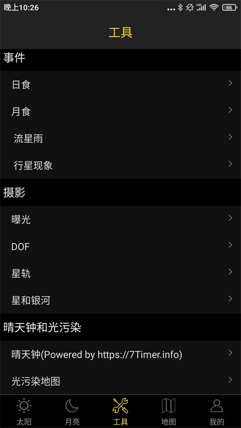 4、内置多种实用工具,从天文观测到摄影参数计算,满足不同场景需求。