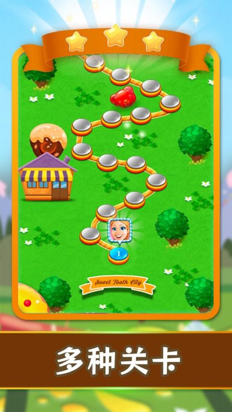 每个关卡都有特定的通关条件,如收集指定数量的某种糖果、清除所有果冻或达到目标分数。玩家需要在限定步数内完成任务,步数用尽则挑战失败。完美通关会获得星级评价,集齐星星可以解锁隐藏内容。