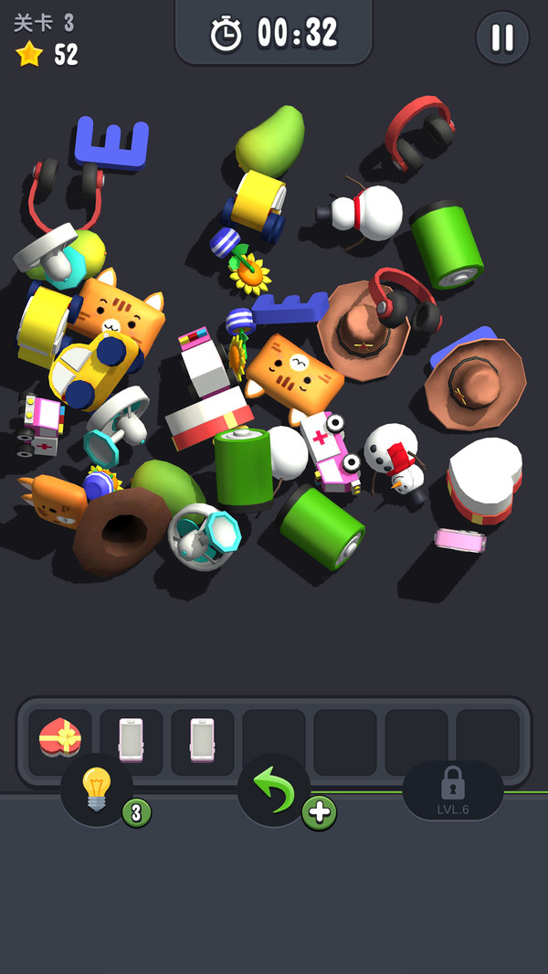 游戏包含超过500个精心设计的关卡,每个关卡都有独特的物品组合和消除目标。随着关卡深入,会出现移动障碍、时间限制等特殊挑战元素,让游戏体验更加丰富多彩。创新的连击系统奖励连续快速消除的玩家,最高可达成10连击的炫酷效果。成就系统记录玩家的各项游戏里程碑,完成特定目标还能解锁特殊奖励。游戏画面采用高清2D手绘风格,每个物品都经过精心绘制,色彩鲜明且辨识度高。