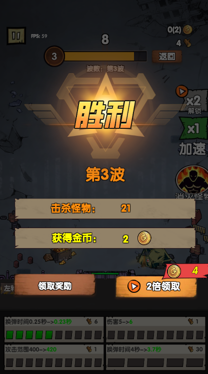 游戏操作简单易上手:首先下载并进入游戏主界面,点击开始游戏即可开启你的末日求生之旅。在战斗中,点击手枪图标可以攻击来袭的僵尸,成功击杀敌人可获得金币奖励。这些金币可以用来升级武器威力或解锁新的防御设施。每关的目标是消灭所有进攻的怪物,通关后不仅能获得丰厚奖励,还能解锁更强大的武器装备。随着游戏进程推进,你将面对越来越强大的僵尸军团,需要不断优化你的防御策略。
