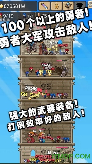 1、采用古典像素风格的画风,视觉效果清爽明快,充满怀旧感;2、创新的塔楼闯关玩法,每层都有独特的挑战和惊喜;3、丰富的武器和装备系统,可以打造个性化的战斗风格;4、紧张刺激的救援任务,完成挑战可获得丰厚奖励;5、支持多人联机玩法,与好友共同冒险乐趣翻倍;6、挂机系统让游戏更加轻松休闲,适合各类玩家体验。