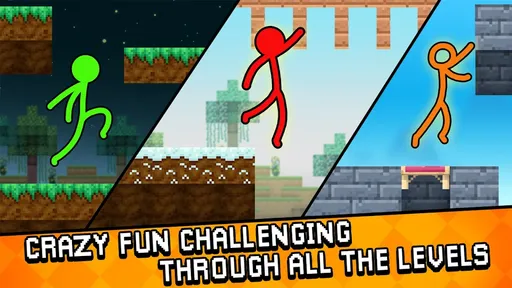 1、玩家需要控制火柴人在各种复杂的地形中奔跑、跳跃和滑行,躲避障碍并尽可能快地到达终点。游戏场景设计极具创意,从城市高楼到丛林秘境,每个场景都带来全新的视觉体验和操作挑战。