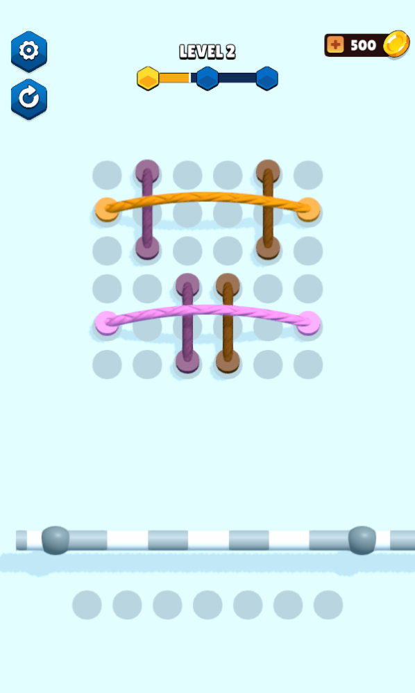 1、丰富多样的关卡设置,包括绳索缠绕、拉伸、连接等多种玩法;游戏初期关卡设计简单明了,新手玩家也能快速掌握核心玩法。