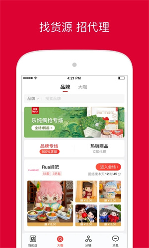 1、轻松注册成为店主,发布商品流程简单快捷,系统自动关联产品描述素材;根据不同代理级别智能计算价格,代理商可一键加价并转发给自己的团队,操作便捷高效。