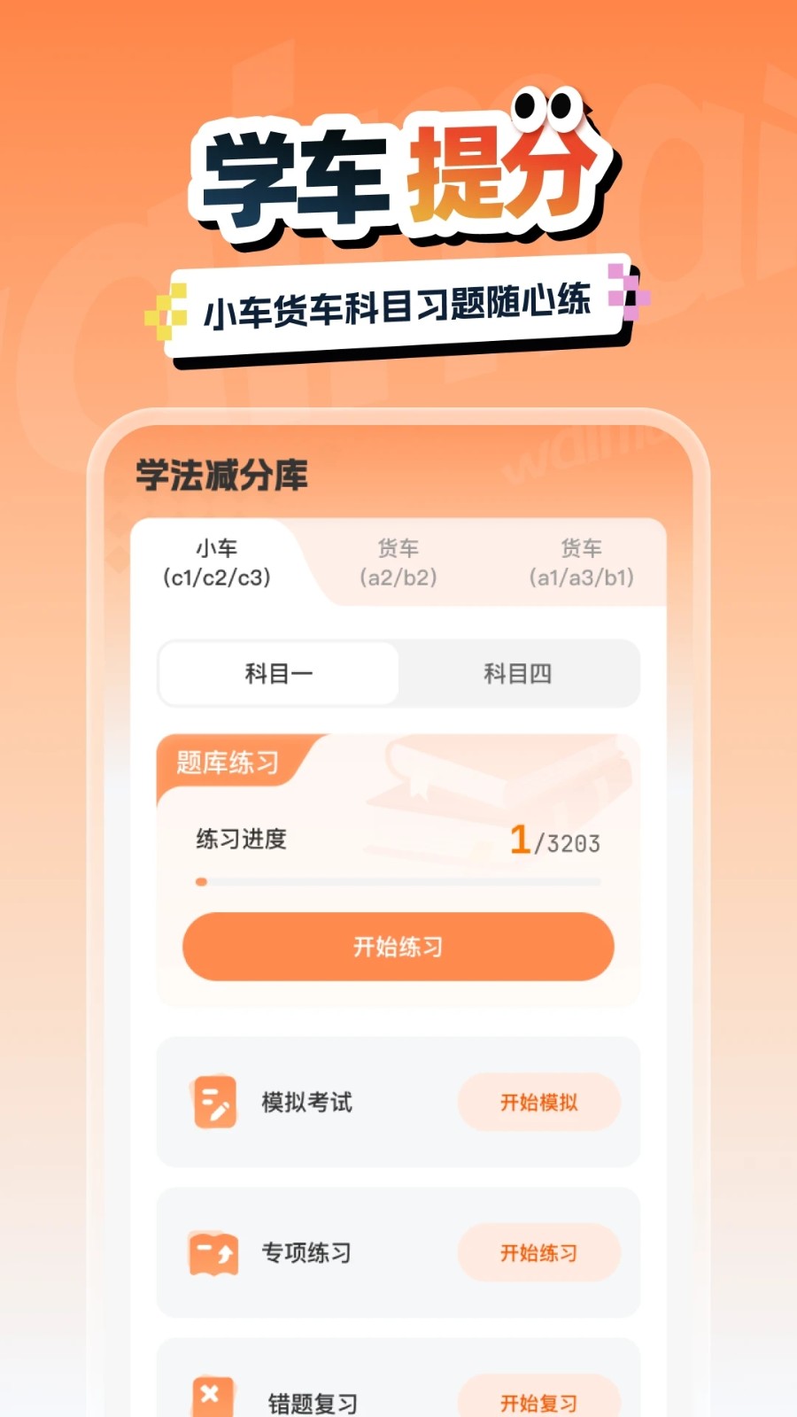 1、题库系统持续更新,目前已收录超过10000道专业试题,涵盖小车、货车等不同车型的考试要点。智能刷题系统会根据用户答题情况自动调整题目难度,重点强化易错知识点,配合详细的解析说明,让学法减分备考事半功倍。