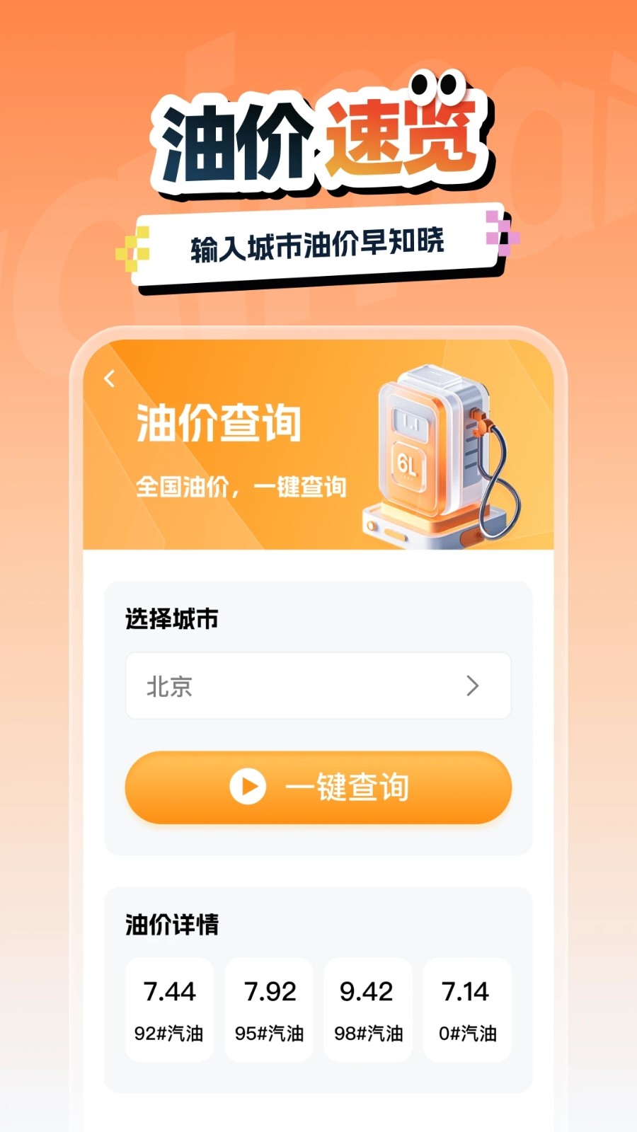 2、油价查询功能接入官方数据源,支持全国300多个城市的实时油价监控。用户可以设置油价提醒阈值,当油价波动达到预设幅度时自动接收通知。系统还会根据用户的加油习惯,智能推荐最优加油时间和站点,最大程度节省燃油开支。