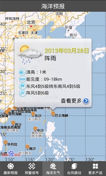 2、海洋气象早预知:针对我国四大海域(渤海、黄海、东海、南海)提供专业海洋气象服务,包括浪高、潮汐、能见度等关键数据,特别适合渔民、船员和海上作业人员使用。系统还能根据实时数据预测未来24小时的海况变化,为海上活动提供安全保障。