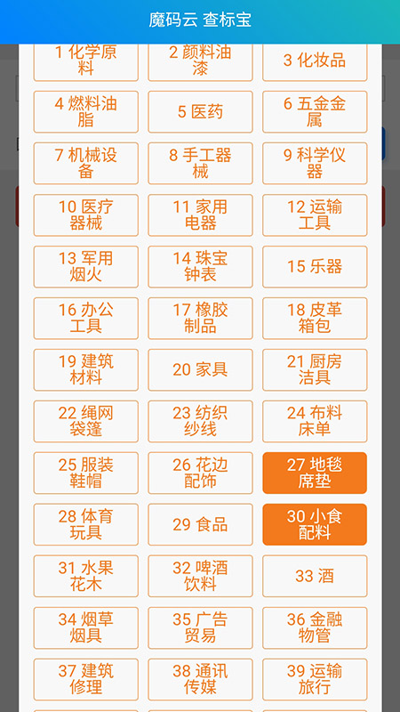 商标分类查询:提供完整的商标分类体系查询,涵盖45个国际分类及细分群组。用户可根据商品或服务类型智能推荐最佳注册类别,同时显示各类别的注册热度数据,帮助申请人规避注册风险,提高商标注册成功率。