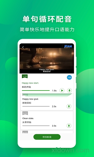 1. 每日更新机制:持续更新最新影视素材,保持学习内容的新鲜感;2. 趣味学习模式:通过配音游戏化的方式,让背单词、练语法变得生动有趣;3. 科学提升路径:系统化的配音训练能有效改善发音和口语流利度;4. 移动学习体验:支持随时随地练习,充分利用碎片化时间提升英语;5. 专业配音体验:提供原声对比功能,让您感受专业配音演员的工作过程;6. 个性化推荐:根据用户水平和兴趣智能推荐适合的练习内容;7. 成就激励系统:通过勋章、排行榜等机制保持学习动力。