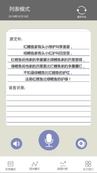 3、疯狂的挑战,在最短的时间内用最清楚的话语将绕口令读出来,打分系统看看你的分数排在第几名。游戏内置全球排行榜和好友排行榜,玩家可以查看自己在不同绕口令上的排名。系统会记录最佳成绩,并生成个人发音进步曲线。每月还会举办线上绕口令大赛,优胜者将获得专属称号和奖励。